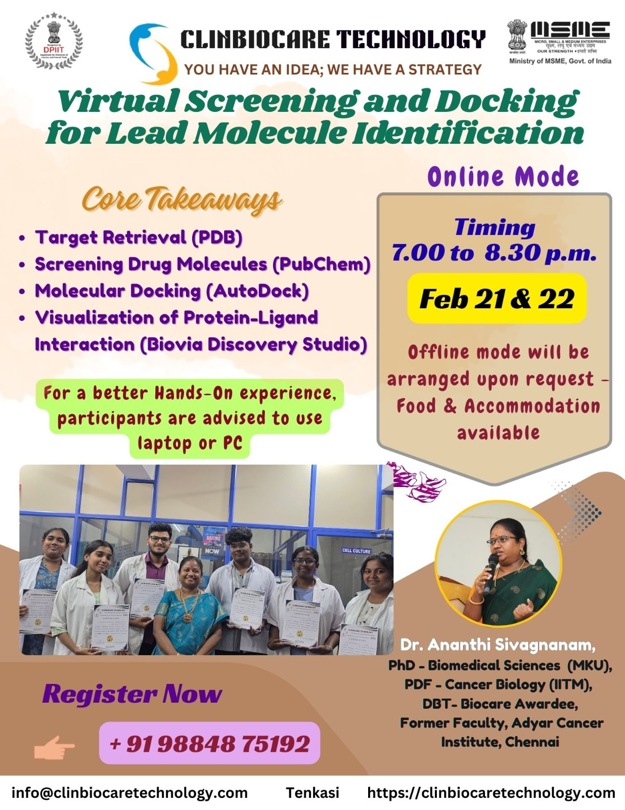 Clinbiocare Technology (CBT), a well-established Biotech institute registered under MSME, which provides extensive research knowledge through productive trainings & hands on workshops. CBT was established by 2016 as a unique service provider for proteomic based platform along with Gene expression studies, Microbial genomics etc. Our expertise lies in the important and fast-growing sectors like Proteomics, Genomics, Nanotechnology, Cell based technology, Cancer Biology Biomarker Discovery, Food technology, Informatics, Plant and Environmental sciences. One of our dignified visions is to develop and train the rural students in the field of Science & Technology which will eventually help them for building their career in a fruitful manner.